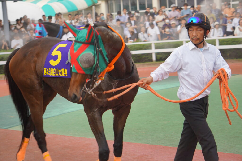 「すいませんでした。今日は装鞍の時からテンションが高くて、レースでも噛んでしまっていましたが、正直相手が強かったですね。軽量で走りやすそうでしたがいくら追い掛けても前が止まらない感じと鞍上が話していました。この後は地元のMRO金賞はまたリトルサムシングとぶつかるため、10/24(金)兵庫クイーン賞・1870m戦に遠征に打って出ようかと考えていますが、今日良い経験をさせてもらった事がが糧になってくれればと思います」(加藤師)