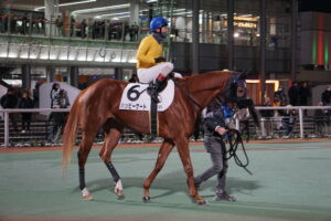 12/5(金)11R スマイルシティ・品川賞 B2(二) 1200m戦に7枠12番安藤洋一騎手で出走。馬体重は467kg(-4)、出走14頭中5番人気でした。レースはスタートから3番手を追走。最後の直線勝ち馬との叩き合いになるもクビ差で2着惜敗でした。「惜しかったですね~。鞍上は、道中ハミを取ったり抜いたり内に刺さったりふざけながら走っていると言っていて、”変態的な馬だ”と表現していました。それを乗りこなす(変態的な?)洋一君とも手も合うんでしょうし、あれだけ遊んで伸びて来ているのですからこのクラスを勝つ力はあると思いますよ。次は年内最後のレースである12/31(水)の12R・おおとり賞B2B3・1200m戦に向けて調整していきたいと思います」(田中正人師)