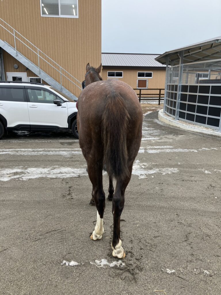 「年末年始の馬場閉鎖中はウォーキングマシン運動を午前40分・午後30分で過ごしており、1/15(木)より坂路登坂を再開しています。この後は3月の能力検査受検に向けて、2月に入ったら坂路の本数を増やしたり(現在は1日1本)、ゲートを通す事も始めて行く予定です」(川島洋人師)