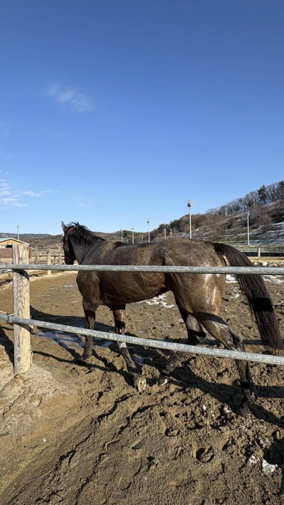 ※以下は12月20日頃のパドック放牧の様子です(調教師提供)