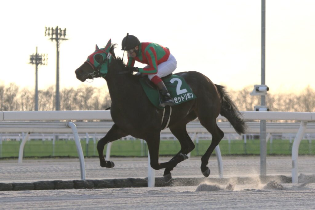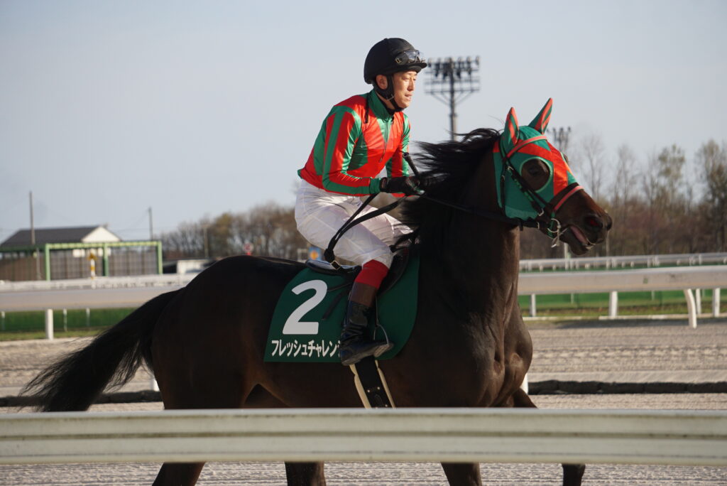 4/23(木)門別5R JRA認定フレッシュチャレンジ競走 1000m戦に2枠2番岩橋騎手で出走。馬体重は466kg、出走8頭中2番人気でした。レースはスタートから2番手を追走。最後の直線逃げた馬との叩き合いを制すと3馬身振り切って新馬勝ちを決めています。共有の皆様、おめでとうございました!!