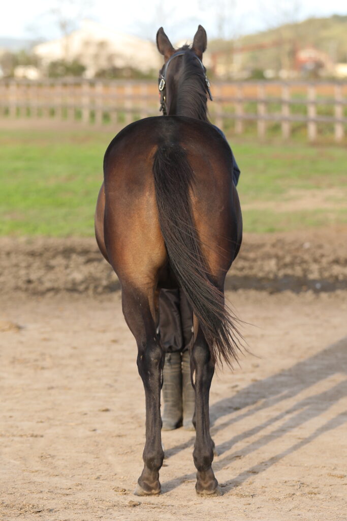 セール時の測尺: 体高151cm 胸囲175cm 管囲19.5cm 馬体重430kg